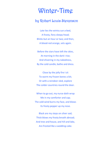 Teacher S Pet Robert Louis Stevenson Winter Time Poem Explained